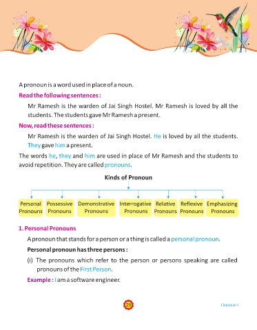 The words he , they and him are used in place of Mr Ramesh and the students to