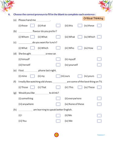 6. Choose the correct pronoun to fill in the blank to complete each sentence :