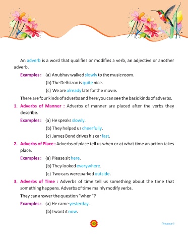2. Adverbs of Place : Adverbs of place tell us when or at what time an action takes