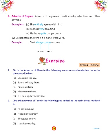 4. Adverbs of Degree : Adverbs of degree can modify verbs, adjectives and other