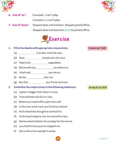 1. Fill in the blanks with appropriate conjunctions : Grammar Skill