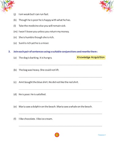 3. Join each pair of sentences using a suitable conjunctions and rewrite them :