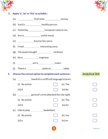2. Apply ‘a’, ‘an’ or ‘the’ as suitable :