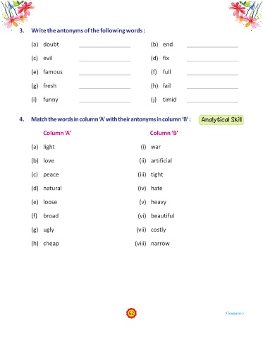 4. Match the words in column ‘A’ with their antonyms in column ‘B’ : Analytical Skill