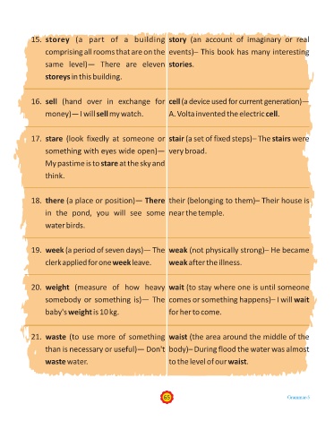 17. stare (look fixedly at someone or stair (a set of fixed steps)– The stairs were