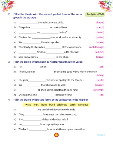 2. Fill in the blanks with the present perfect form of the verbs Analytical Skill