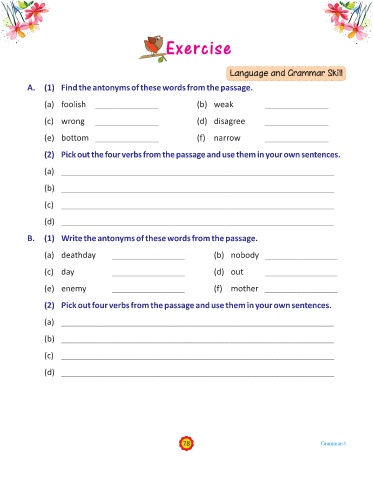 (2) Pick out the four verbs from the passage and use them in your own sentences.