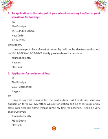 on 18-12-20XX to 19-12-20XX. Kindly grant me leave for two days.