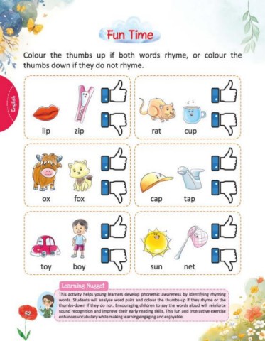 words. Students will analyse word pairs and colour the thumbs-up if they rhyme or the :