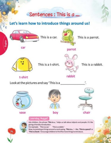 ( Ask children, the phrase 'This is a .. .' helps us talk about objects and people. It's like ~