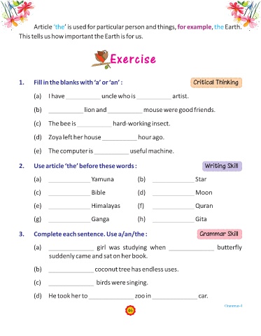 3. Complete each sentence. Usea/an/the : Grammar Skill