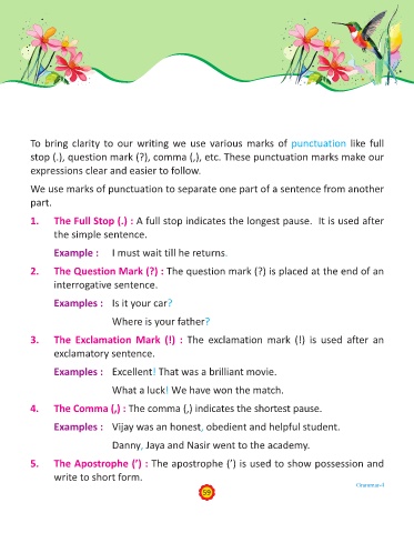 1. The Full Stop (.) : A full stop indicates the longest pause. It is used after