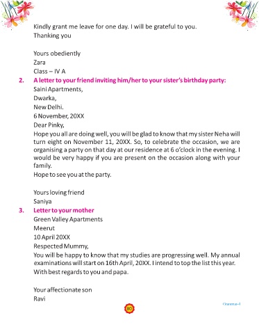 2. A letter to your friend inviting him/her to your sister’s birthday party: