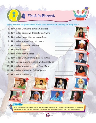 Anna Rajam Malhotra, Rakesh Sharma, Mother Teresa, Rabindranath Tagore, Kalpana Chawla, Dr. Sarvepalli
