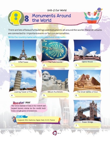 Leaning Tower of Pisa                  Mount Rushmore                    The Great Sphinx of Giza