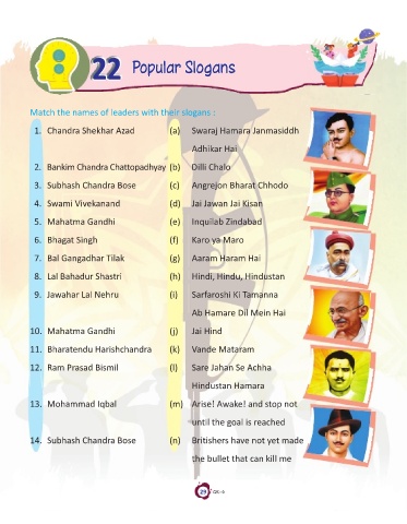 10. Mahatma Gandhi (j) Jai Hind