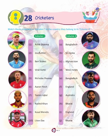 Match these cricketers in ‘Column I’ to the country they belong to in ‘Column II’ :