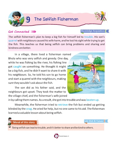 the fish. This teaches us that being selfish can bring problems and sharing and