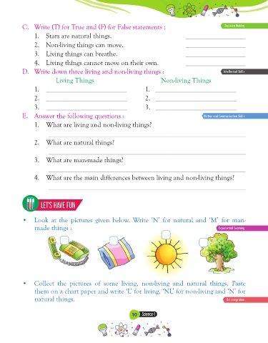 them on a chart paper and write ‘L’ for living, ‘NL’ for non-living and ‘N’ for