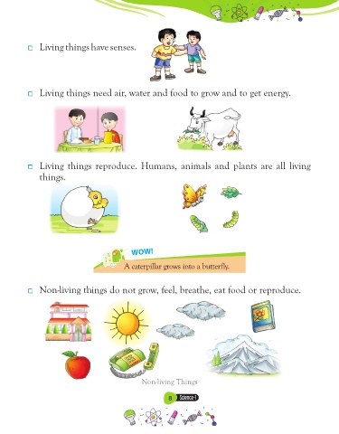 0 Non-living things do not grow, feel, breathe, eat food or reproduce.