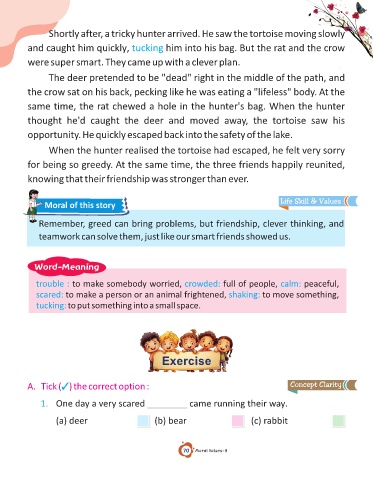 Shortly after, a tricky hunter arrived. He saw the tortoise moving slowly