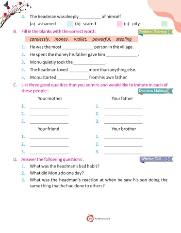 B.  Fill in the blanks with the correct word :                                           Problem Solving