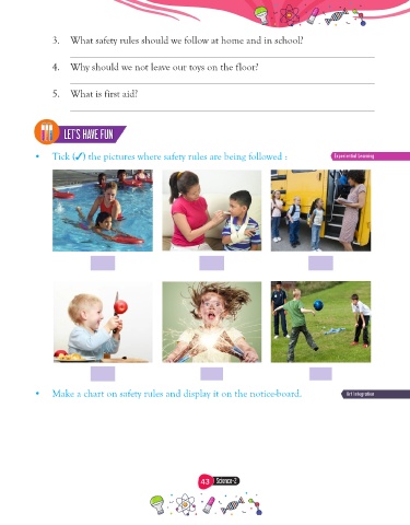 • Tick ( ) the pictures where safety rules are being followed Experiential Learning