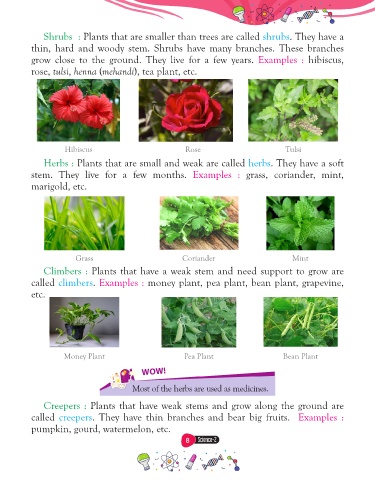 Herbs : Plants that are small and weak are called herbs . They have a soft