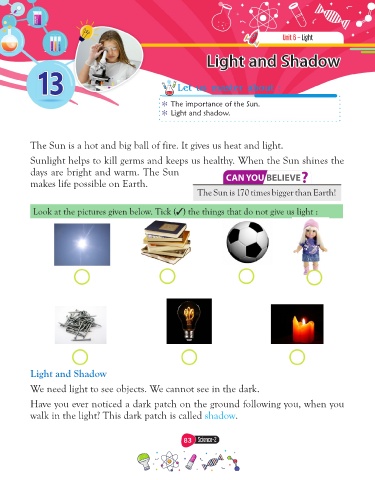 Look at the pictures given below. Tick ( ) the things do not give us light
