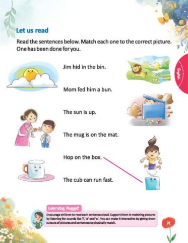 Encourage ch!ldren to read each sentence aloud. Support them In matching pictures 1