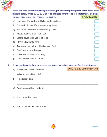 shaded boxes, write S, Q, E, C or R to indicate whether it is a statement, question,