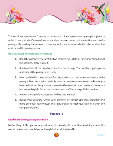The word 'comprehension' means to understand. A comprehension passage is given in