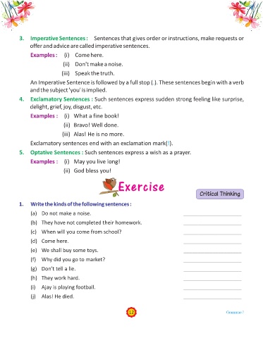 3. Imperative Sentences : Sentences that gives order or instructions, make requests or