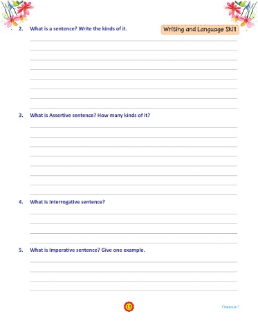 2. What is a sentence? Write the kinds of it. Writing and Language Skill