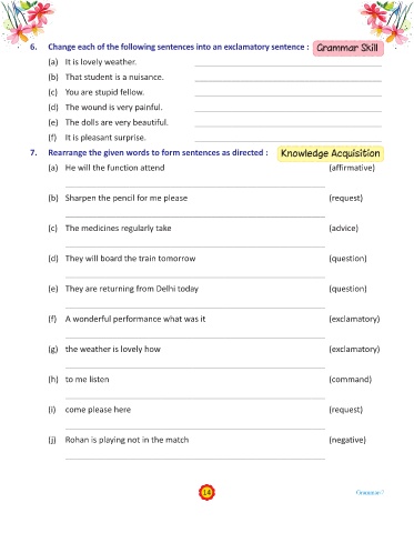 6. Change each of the following sentences into an exclamatory sentence : Grammar Skill