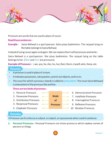 Instead of using nouns again and again. We can replace them with pronouns and write :