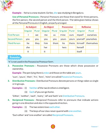 Use of Personal Pronouns : Personal Pronouns are those that stand for three persons,