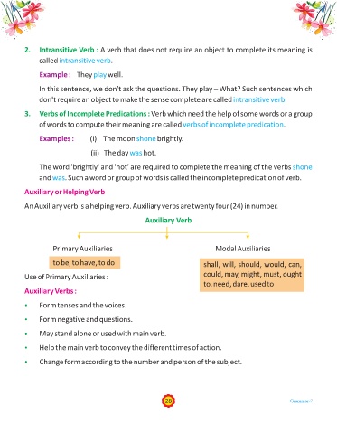 2. Intransitive Verb : A verb that does not require an object to complete its meaning is