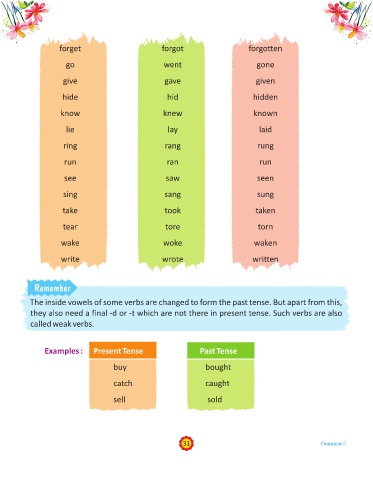 The inside vowels of some verbs are changed to form the past tense. But apart from this,