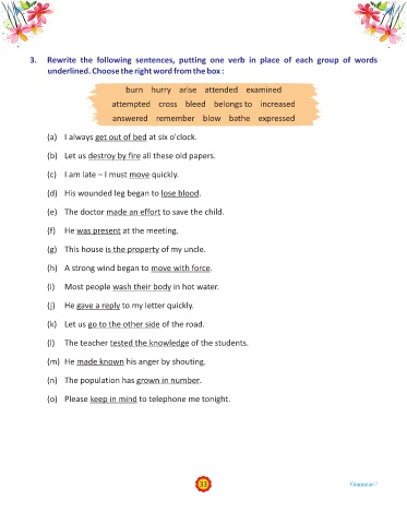 3. Rewrite the following sentences, putting one verb in place of each group of words