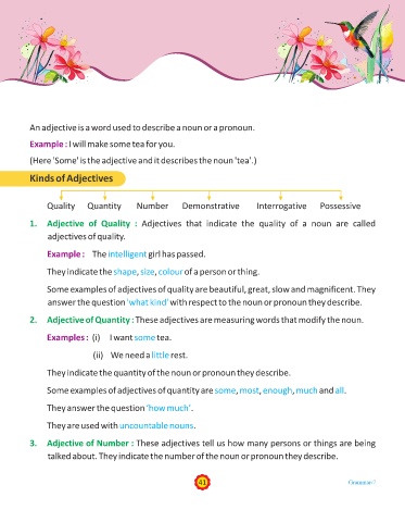 1. Adjective of Quality : Adjectives that indicate the quality of a noun are called