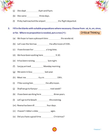 3. Fill in the blanks with suitable prepositions where necessary. Choose from : at, in, on, since,