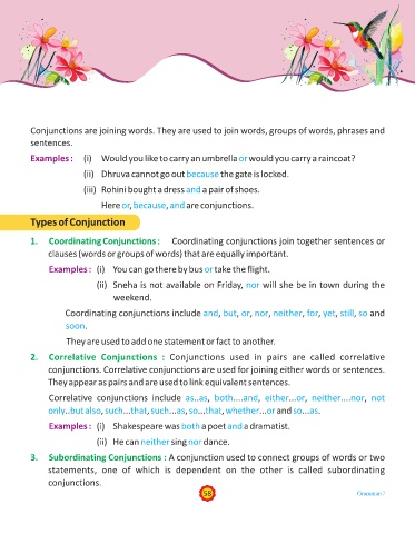 Conjunctions are joining words. They are used to join words, groups of words, phrases and