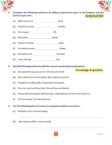 2. Complete the following sentences by adding conjunctions given in the brackets and few