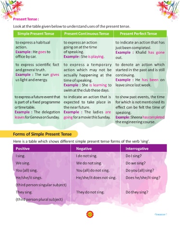 Here is a table which shows different simple present tense forms of the verb 'sing'.