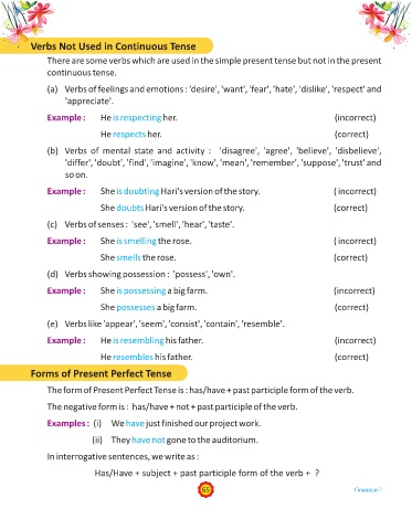 (a) Verbs of feelings and emotions : ‘desire', 'want', 'fear', 'hate', 'dislike', 'respect' and