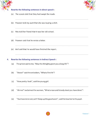 4. Rewrite the following sentences in Indirect Speech :