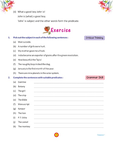 2. Complete the sentences with suitable predicates : Grammar Skill