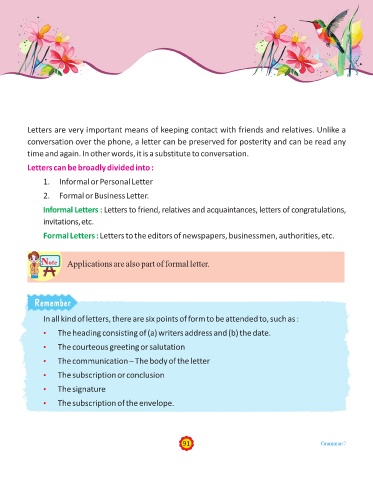 Informal Letters : Letters to friend, relatives and acquaintances, letters of congratulations,