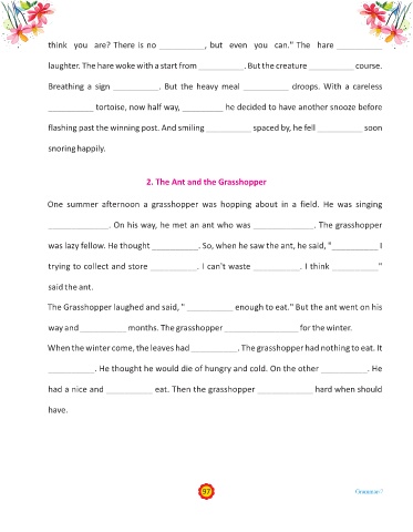 _____________. On his way, he met an ant who was _____________. The grasshopper